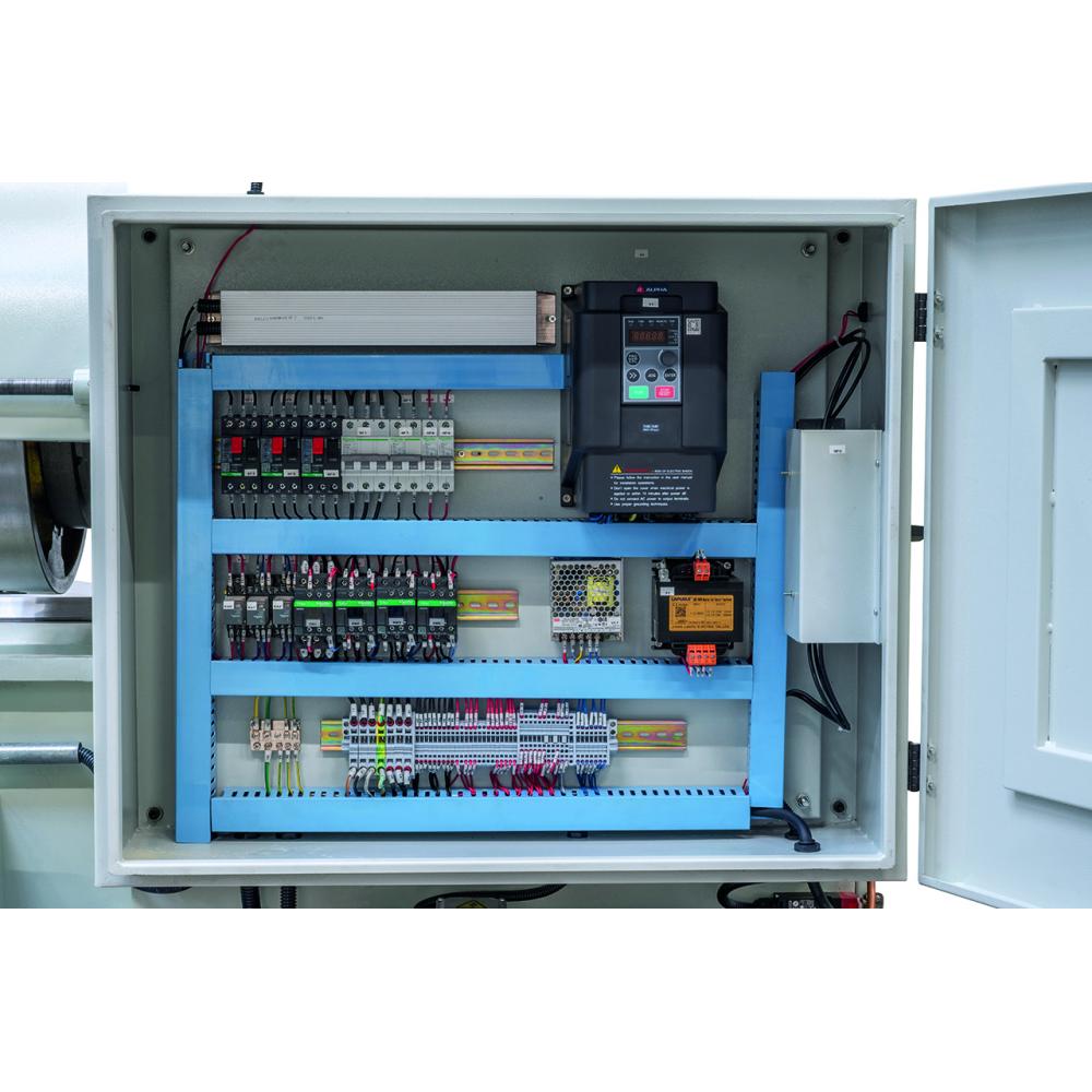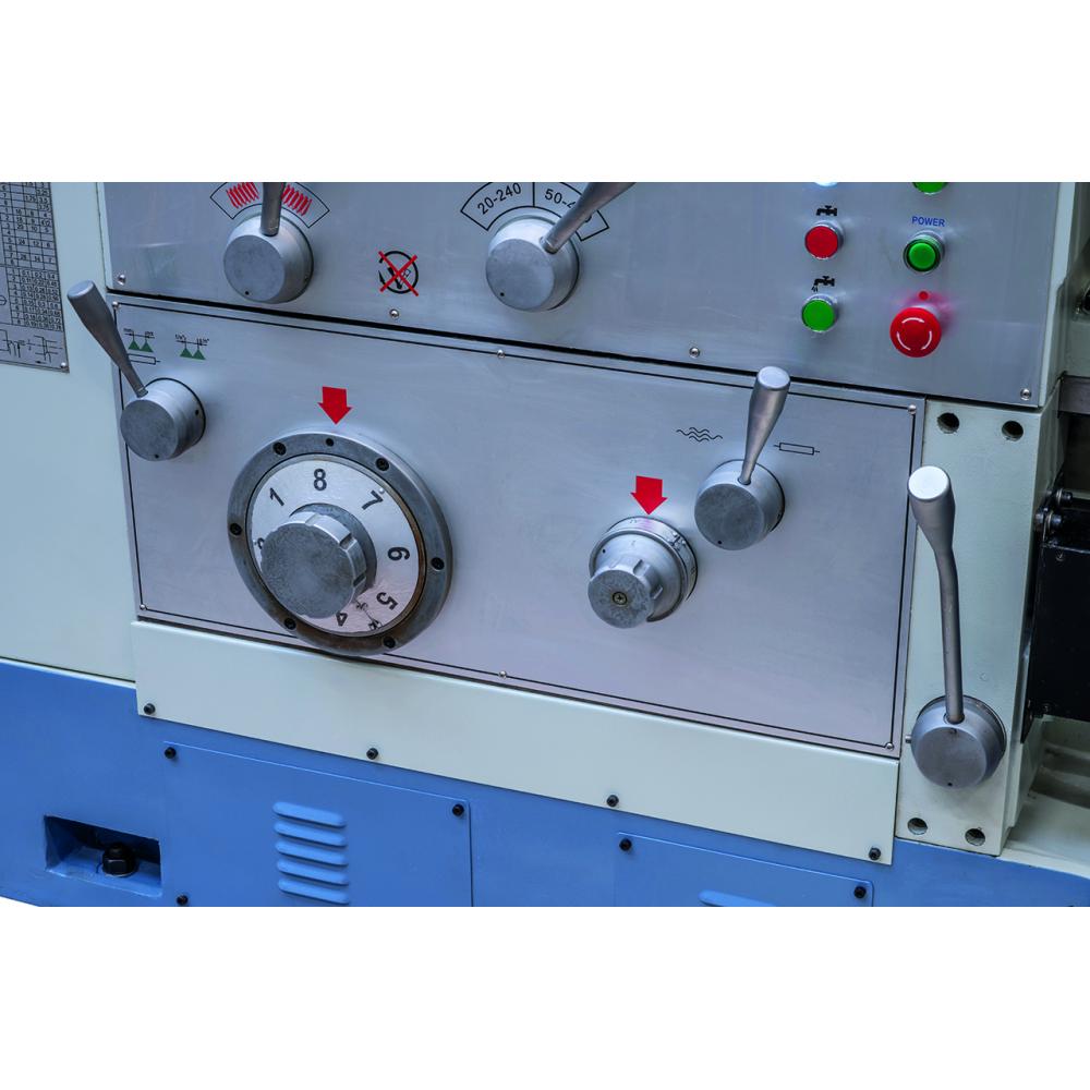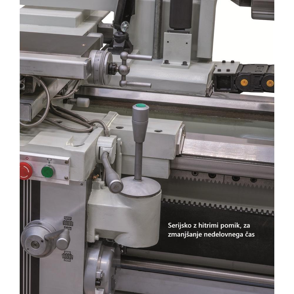 - Brezstopenjsko krmiljenje hitrosti na glavi menjalnika omogoča optimalno prilagoditev hitrosti rezanja obdelovancu in hitrosti podajanja.