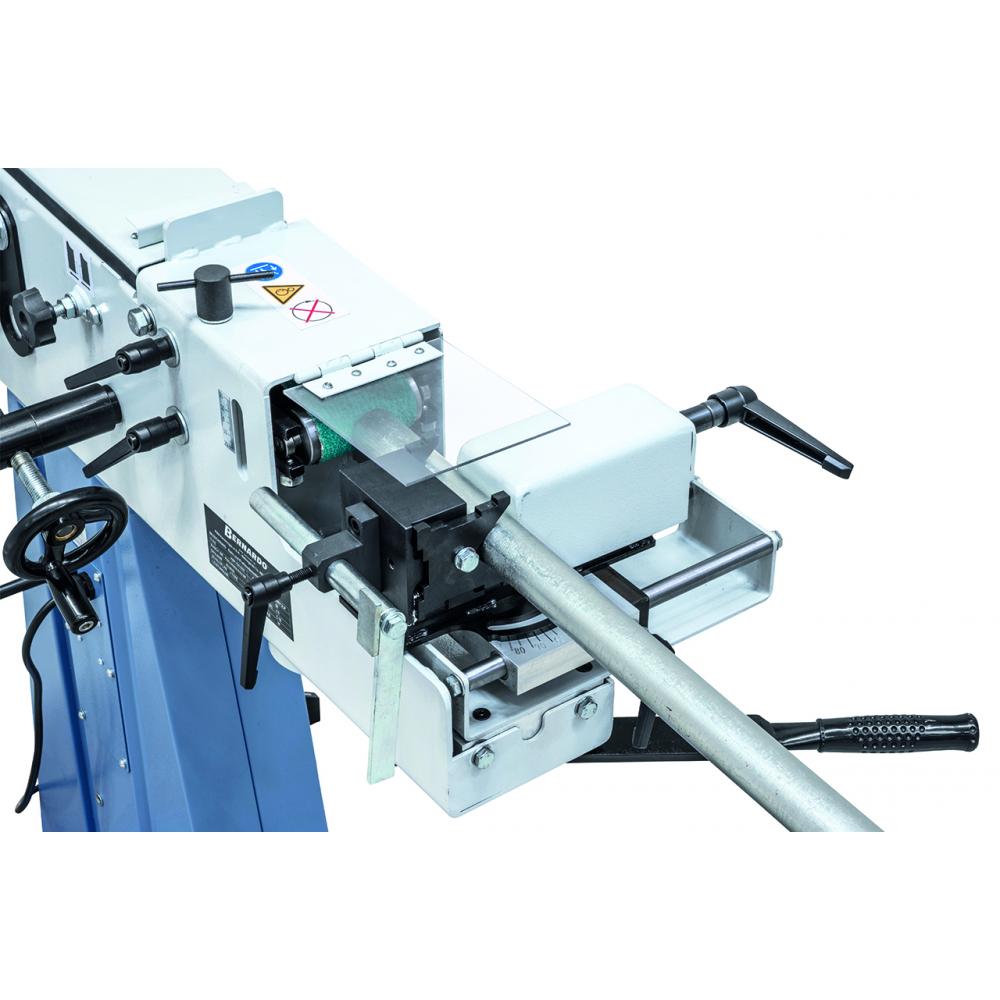 KBR 75 x 1500 je večnamenski brusilni stroj za brušenje koncev cevi in ​​profilov na sprednji strani, za brušenje robov, površin in krožno brušenje na zadnji strani ter za površinsko brušenje na vrhu stroja.