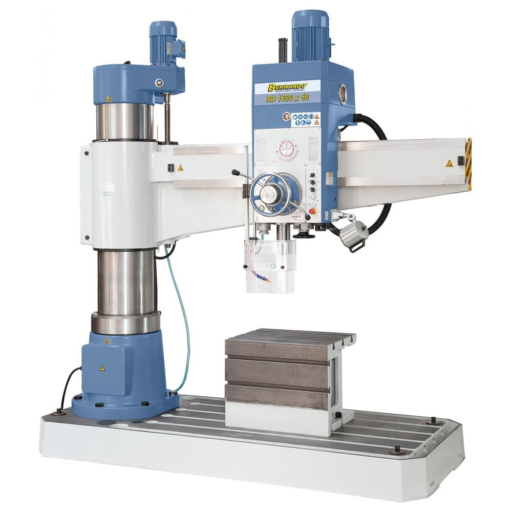 Radialni vrtalni stroj RD 1600 x 50 je bil zasnovan posebej za ekonomično obdelavo velikih posameznih kosov in majhnih serij z visoko natančnostjo. Zahvaljujoč visoki zmogljivosti, enostavnemu upravljanju in široki paleti možnih uporab je ta model primeren za strojništvo, servisne delavnice in mehanične delavnice. Dvig/spust nosilne konzole se vrši s pomočjo elektromotorja (električni dvig/spust) fiksiranje le tega pa s pomočjo hidravličnega vpetja.
