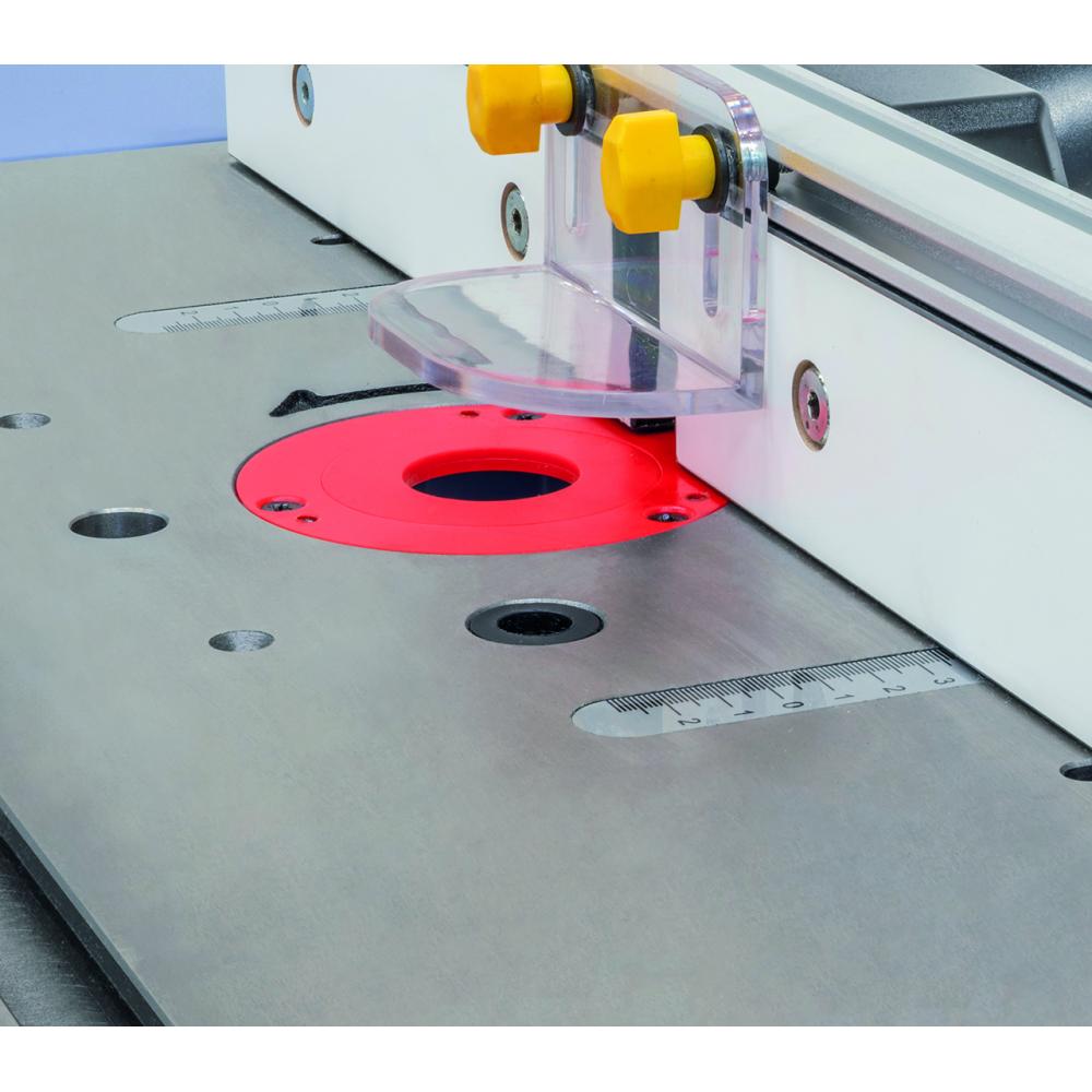 - Standardno s T-režo (19 mm) v delovni mizi za pritrditev zaščitnega okrova z vodili ali različnih vpenjal